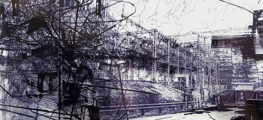 Recent works examine dust devils and updrafts as real-time indicators of global warming, overlaying imagery from flood zones and earthquake fault lines with local infrastructure. Her sculptural installations incorporate fishing nets, concrete, rebar, and architectural debris, freezing moments of environmental onslaught while questioning what emerges in devastated landscapes.
