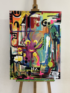 My creative expression often explores texture and vibrant color, aiming to create dynamic pieces that almost emerge from the canvas. I frequently work with acrylic and watercolor due to their quick-drying properties, and I love to experiment by mixing mediums, crossing spray paint with acrylics, and combining watercolor, ink, and acrylic paintto achieve unique visual effects.
