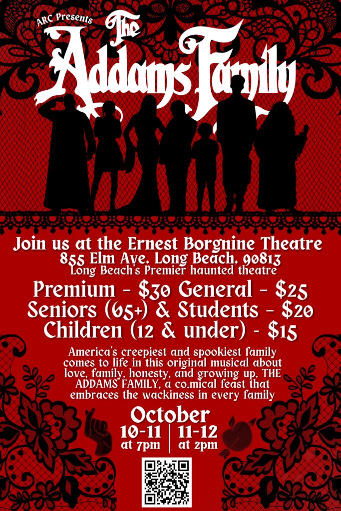 Bring the whole family and experience a ghoulishly delightful musical perfect for the Halloween season! Join the hilariously creepy and kooky Addams Family as they come to life on stage in this family-friendly musical adventure! Wednesday Addams has grown up and fallen in love with a “normal” young man, and her secret turns the Addams household upside down. Featuring catchy songs, spooky fun, and the iconic characters audiences love, this production promises chills, laughs, and heart for children and adults alike. Presented by The Artists Repertory Collective and Children’s Theatre of Long Beach, this show will delight Broadway fans and newcomers with unforgettable performances and lively musical numbers.