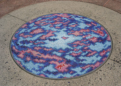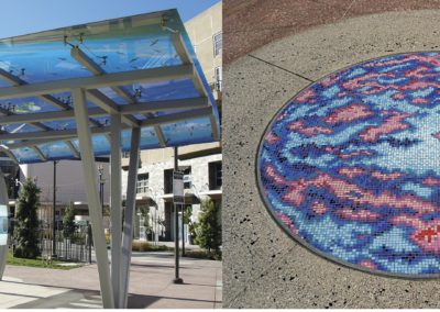 This artwork was planned as part of The Promenade Master Plan for the redevelopment of The Promenade between Ocean Boulevard and 3rd Street. Taking flight as the theme, Carl Cheng’s images, objects and spaces focus on the interplay between landscape, art and architecture. His photomural canopy is a freestanding artwork located in close proximity to paving, which was designed to explore how the landscape of Long Beach can and has been envisioned from contrasting vantage points. The plaza also includes a 5′ tile mosaic by Cheng of the Hubble Telescope map of the primordial universe beyond the “Big Bang” using present day technology.