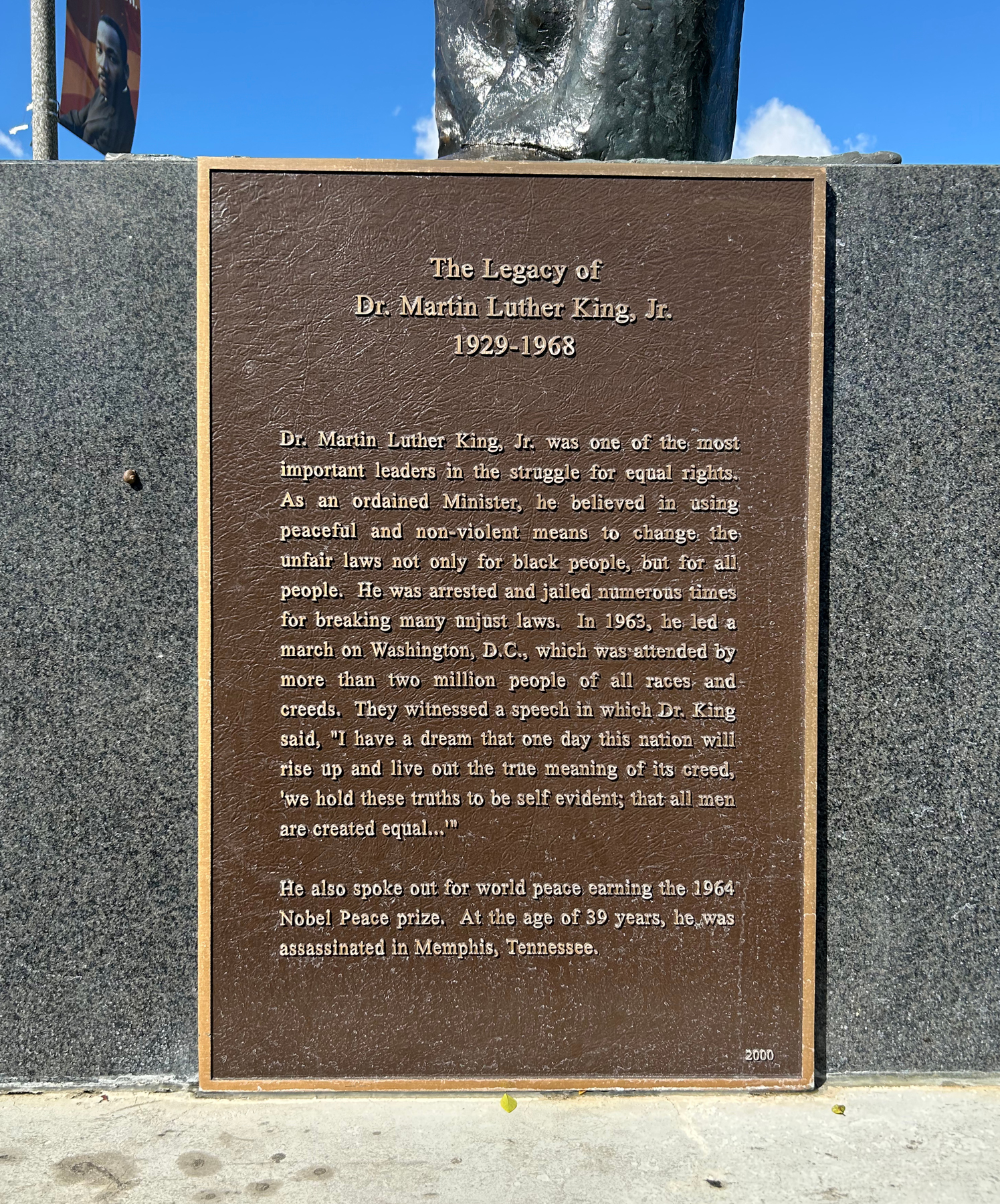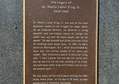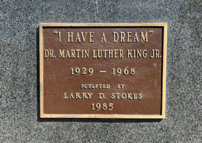 The sculpture celebrates the life and work of Dr. Martin Luther King Jr. Referencing his everlasting famous speech ‘I have a Dream,’ Sculptor Larry D. Stokes represents Martin Luther King Jr. passionately in the middle of his powerful speech. His facial expression and body language express the importance of this great leader’s words on August 28, 1963.