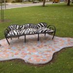 Public artists Tom Barter and Lisa Jacobs collaborated and created benches in Bixby Park. Combining their respective skills in tile art and metal art, the artists built a sofa and placed it on a tile carpet in the park.
