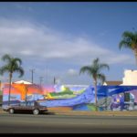 Artist Eva Cockcroft painted the large scale mural “Oil, Life,Ecology”. The mural raises awareness for global warming and earth conservation. The painting is balanced with scenes of chaotic destruction and scenes of hope for humankind. The mural depicts the negative consequences we may have on our planet earth if we do not learn how to nurture our natural resources.